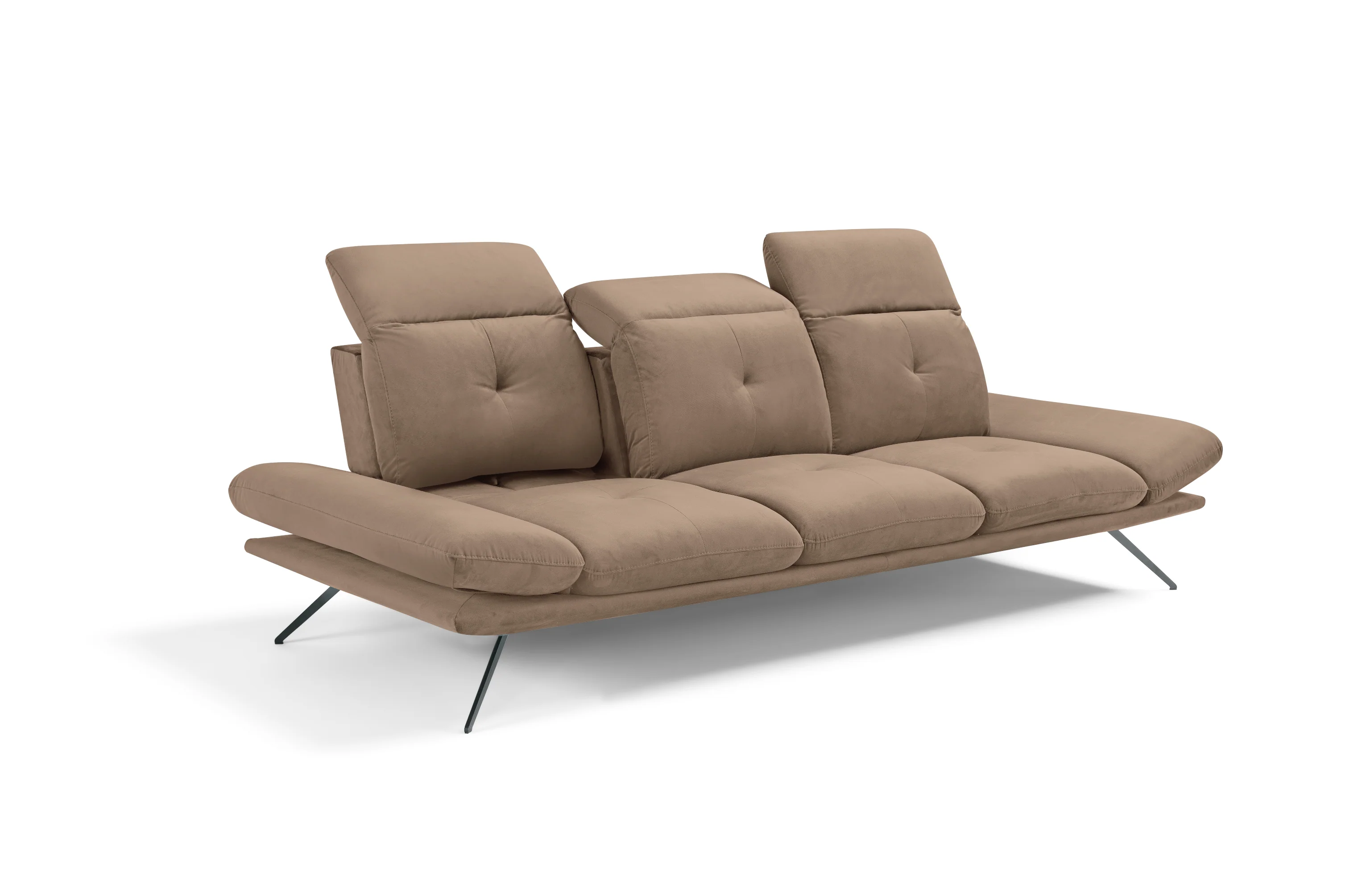 La versione a 3 posti del divano Miranda offre una seduta ampia e accogliente, senza rinunciare alla raffinatezza. I poggiatesta regolabili manualmente si adattano alle esigenze di ogni ospite, garantendo il massimo supporto cervicale. Le sottili gambe in metallo e la silhouette morbida ed essenziale si integrano con naturalezza in qualsiasi ambiente living.